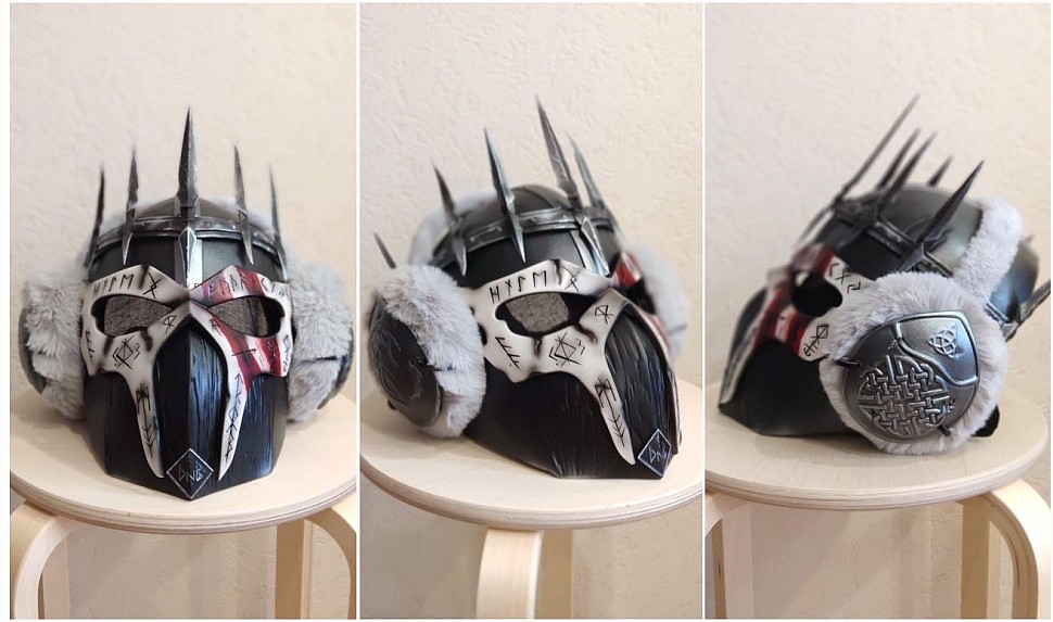 Следующая работа от коллег из Paper Dragon Craft, куда поступил заказ на маску в стиле сурового севера. Требовалось в точности воспроизвести образ с плаката.