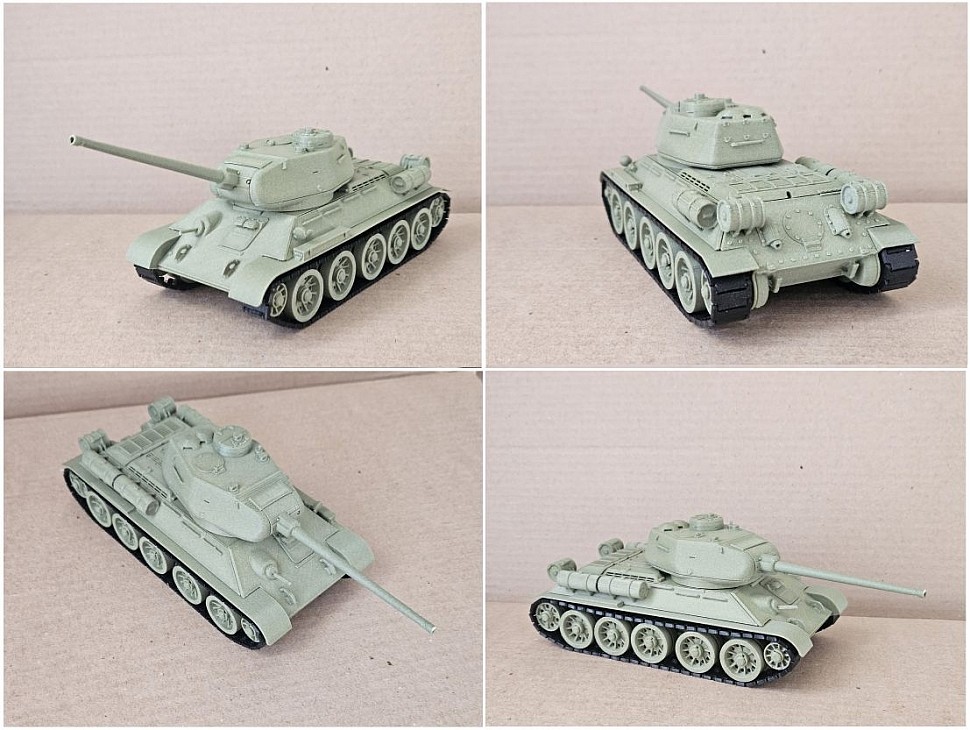 Ещё одна работа — модель танка Т-34-85 в масштабе 1:25. У неё подвижная башня, а каждое звено гусеницы напечатано отдельной деталью, что позволяет им двигаться. Композитный материал придал поверхности характерную шершавость брони.