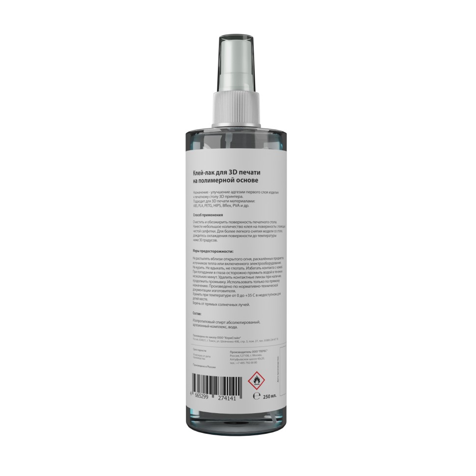 Клей предназначен для использования в печати по FDM технологии на рабочей подогреваемой поверхности, сочетается с любыми материалами.